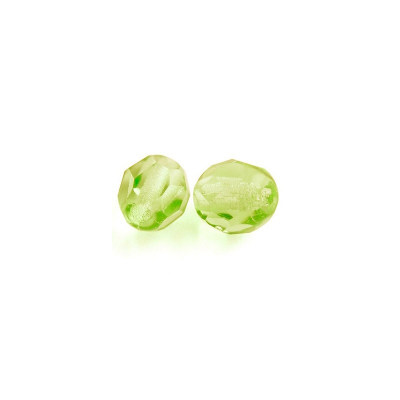 Bolas facetadas de cristal checo de 12 mm en color olivine. Las bolitas no son redondas completamente sino que son un poco ovaladas.
