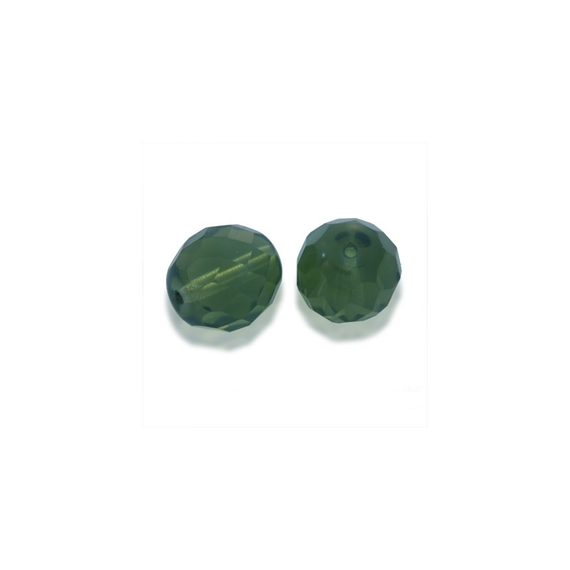 Bolas facetadas de cristal checo de 12 mm en color verde opal. Las bolitas no son redondas completamente sino que son un poco ovaladas.