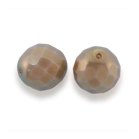 - Bola facetada perlada en color Sand dollar. - Tamaño 12mm. - Taladro 0.7mm. - El precio es por bolsa y la bolsa incluye 6 unidades.