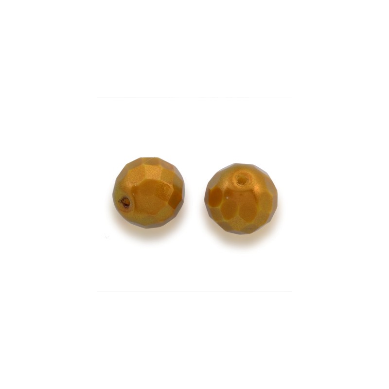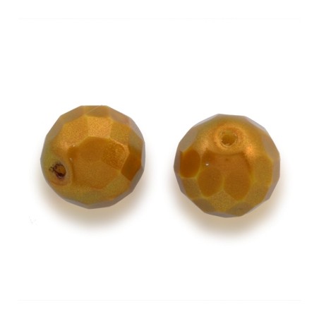 - Bola facetada perlada en color Golden yellow. - Tamaño 12mm. - Taladro 0.7mm. - El precio es por bolsa y la bolsa incluye 6 unidades.