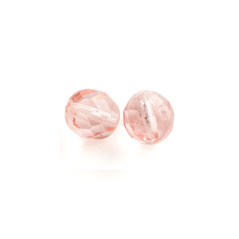 Bolas facetadas de cristal checo de 14 mm en color rose. Las bolitas no son redondas completamente sino que son un poco ovaladas.