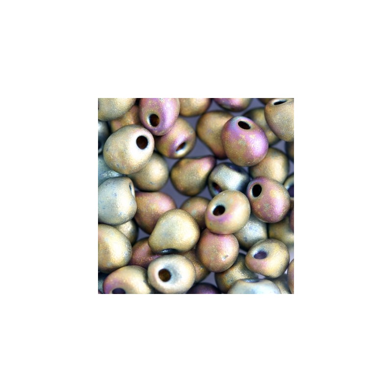 Las cuentas Magatama mini de la marca Miyuki tienen forma de gota en dónde el agujero esta en la parte de arriba formando un colgante en forma de gota. Todas las cuentas son uniformes.