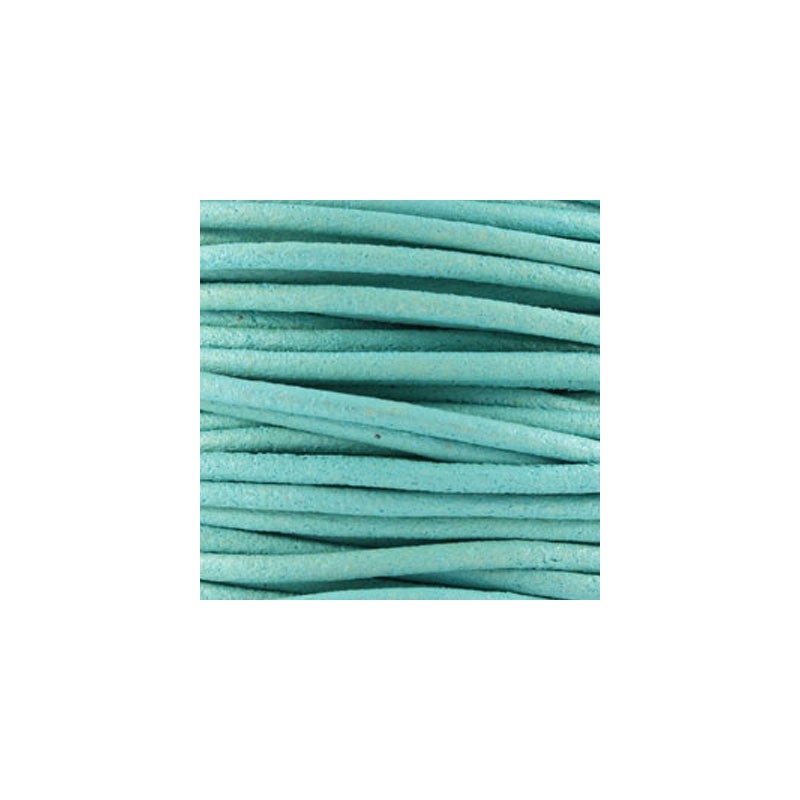 - Cuero redondo de 4 mm de grosor en color verde turquesa, fabricado en España. Este cuero es de alta calidad y es ideal para hacer pulseras y colgantes.