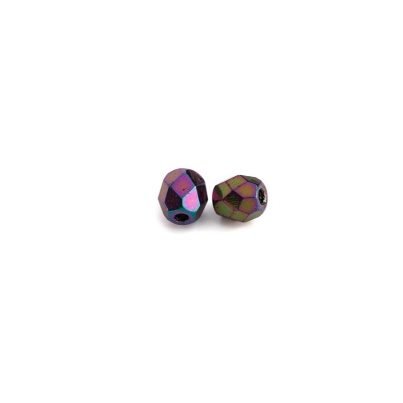 Bolas facetadas de cristal checo de 6 mm en color Jet Red Iris. La bolita no es redonda completamente sino que son un poco ovaladas.