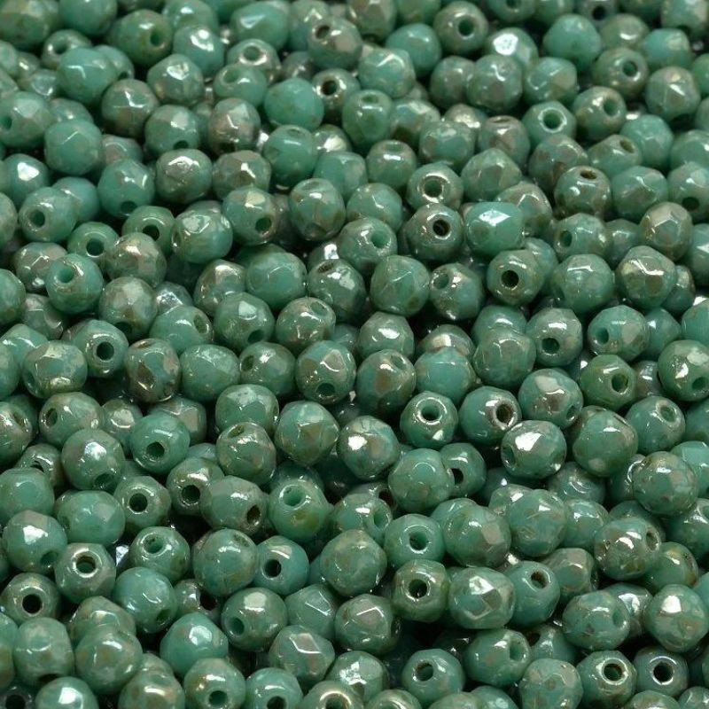Bolas facetadas de cristal checo de 6 mm en color Green Turquoise. La bolita no es redonda completamente sino que son un poco ovaladas.