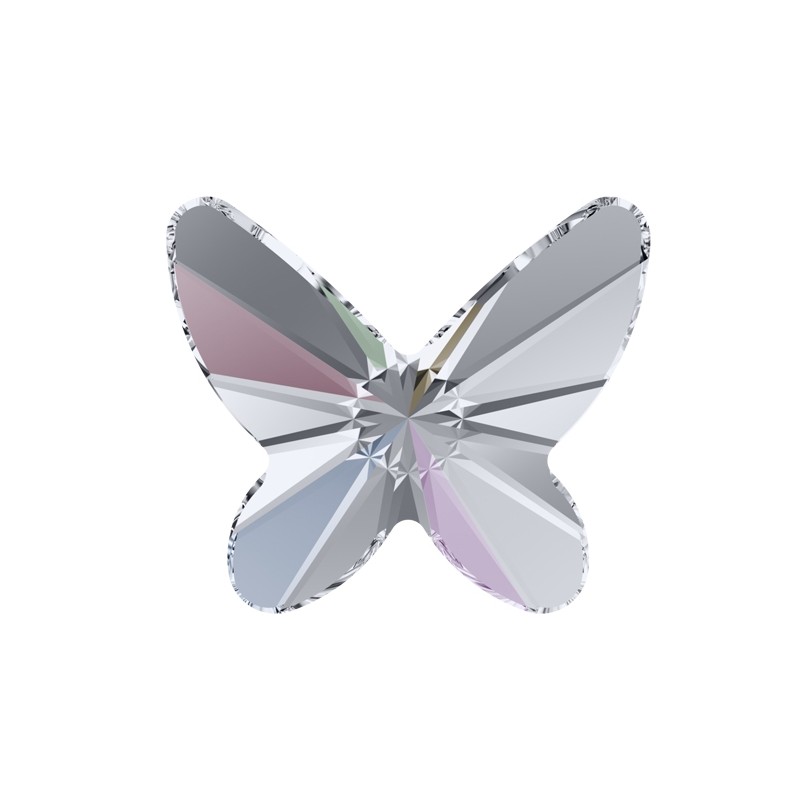 - Mariposa de base plana con cristal de Swarovski. - El tamaño es de 8 milímetros. - El precio es por unidad.