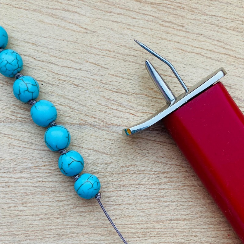 A la hora de utilizar esta herramienta es importante usar un hilo que cuando se haga el nudo no pase por el agujero de la cuenta. Si tiene dudas con el hilo a utilizar, pueden ponerse en contacto con nosotros para que le asesoremos.