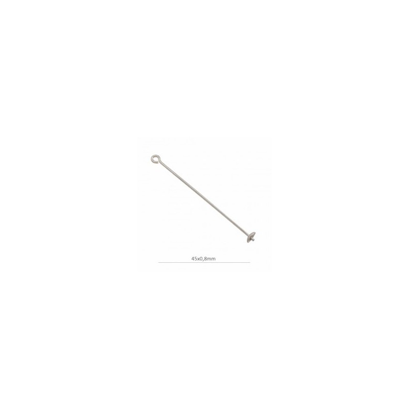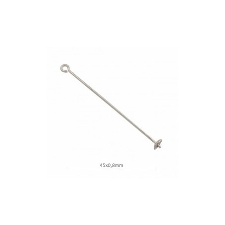 Garrota con casquilla y pincho, en plata de ley. La bolsa contiene 2 unidades. El largo es de 45 mm. y el largo útil es de 39 mm. El hilo es de 0,8 mm. y el pincho es de 2 mm.