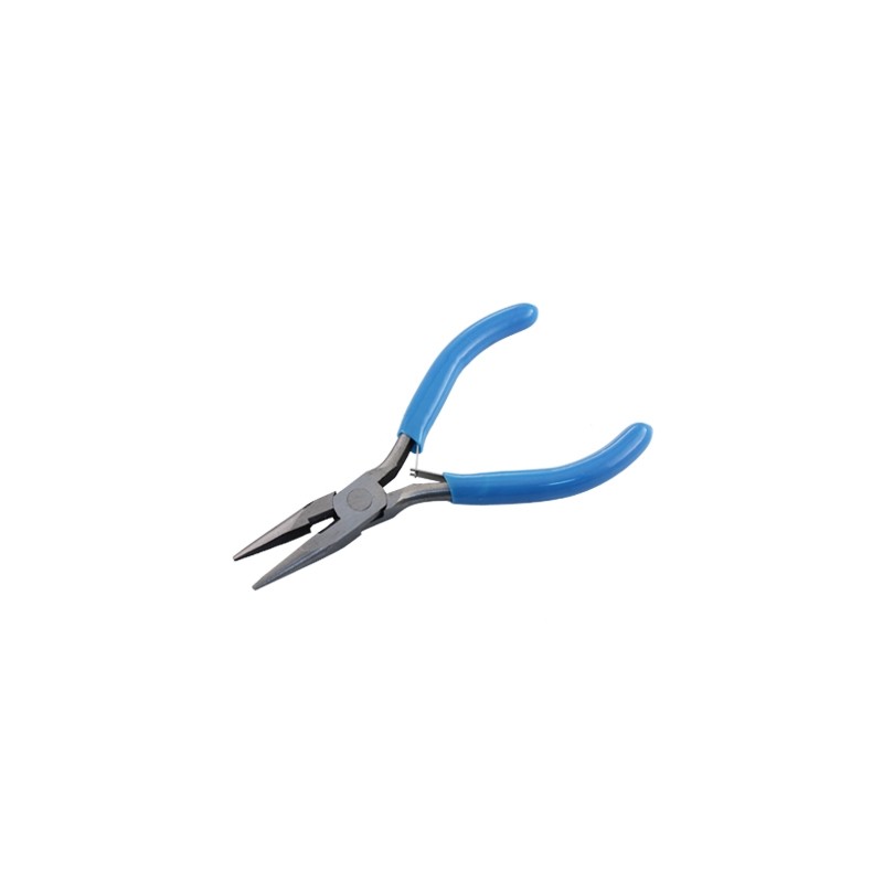Sirve para llegar a sitios en donde el alicate flat no llega. Ademas es un dos en uno. Punta plana pero más estrecha para poder abrir anillas y cerrarlas, apretar grapas y demás. En la superficie de abajo una parte de corte para poder cortar. Este alicate tampoco te puede faltar, ya que es necesario a la hora de manipular en hueco más pequeños.