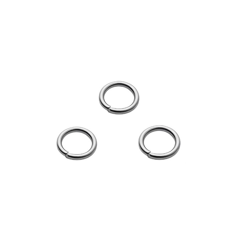 Anillas redondas abiertas de acero inoxidable plateado de 7mm de diámetro con un hilo de 1 mm.