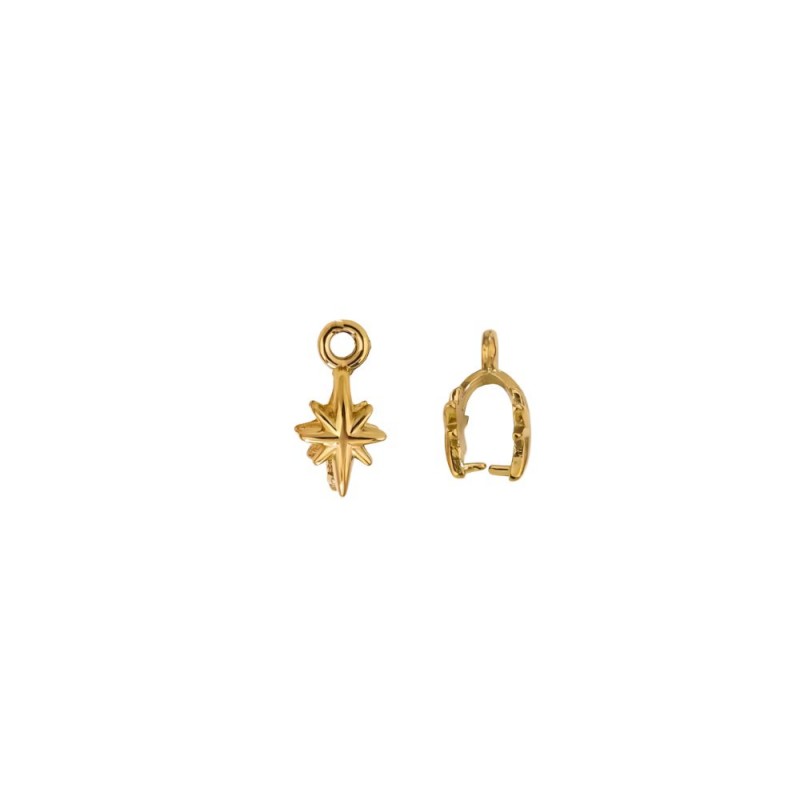 Enganche para colgante con diseño de estrella polar de 13 mm de largo y 6 mm de ancho con anilla de 2 mm. Acero inoxidable dorado.