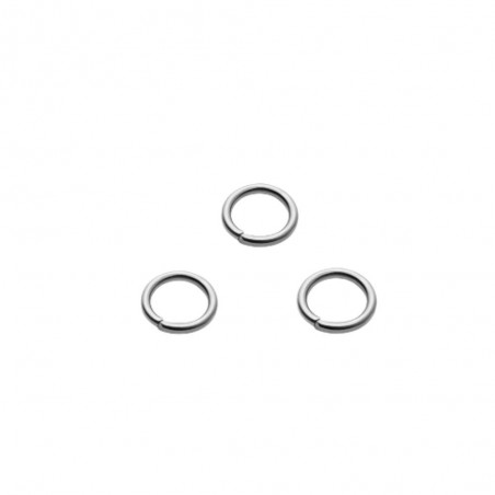 Anillas redondas abiertas de acero inoxidable plateado de 6 mm de diámetro con un hilo de 1 mm.