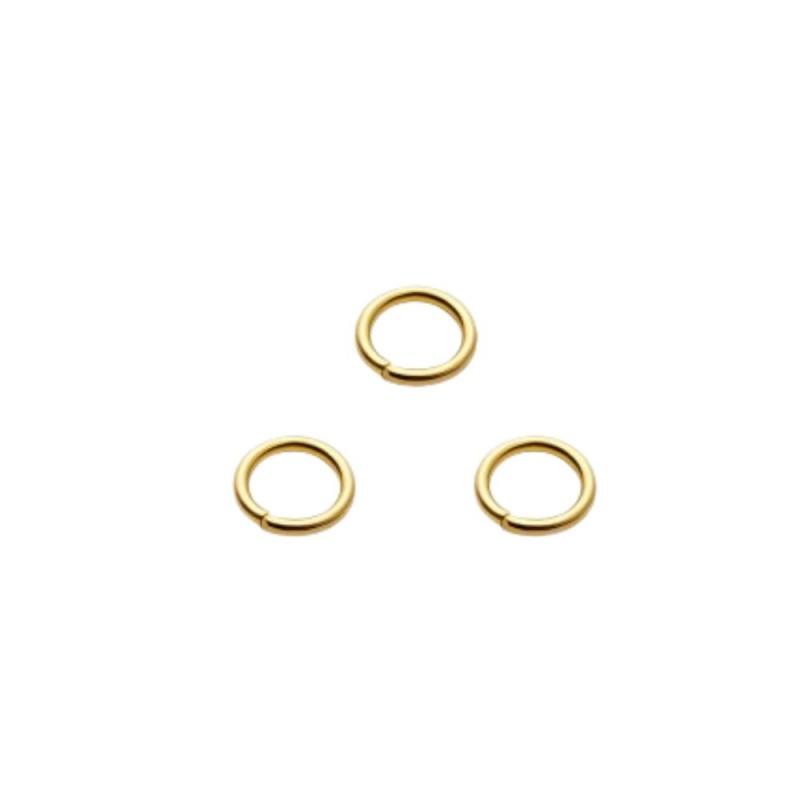 Anillas redondas abiertas de acero inoxidable dorado de 6 mm de diámetro con un hilo de 1 mm.