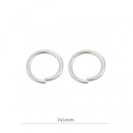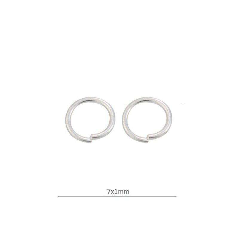 - Anilla abierta redonda de latón con baño de plata. Tamaño exterior es de 6 milímetros y el grosor de 0.8mm. - El precio es por bolsa y la bolsa contiene 50 unidades.