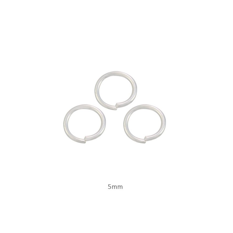 - Anilla redonda abierta de latón en color plateado. - El tamaño es de 5x1 milímetros. - El precio es por bolsa y la bolsa contiene 20 unidades.