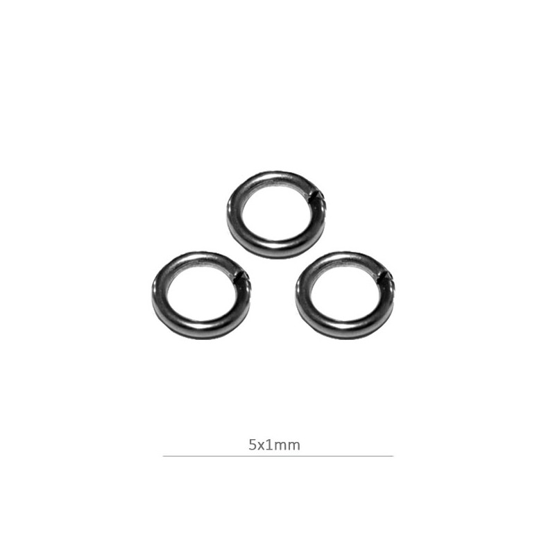 - Anilla redonda abierta de latón en color plata vieja. - El tamaño es de 5x1 milímetros. - El precio es por bolsa y la bolsa contiene 20 unidades.
