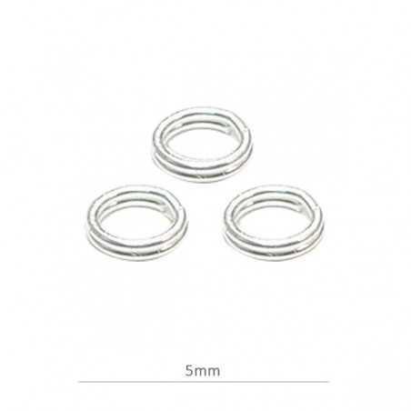 - Anilla llaverito de latón en color plateado. - El tamaño es de 6x0,7 milímetros - El precio es por bolsa y la bolsa contiene 10 unidades.