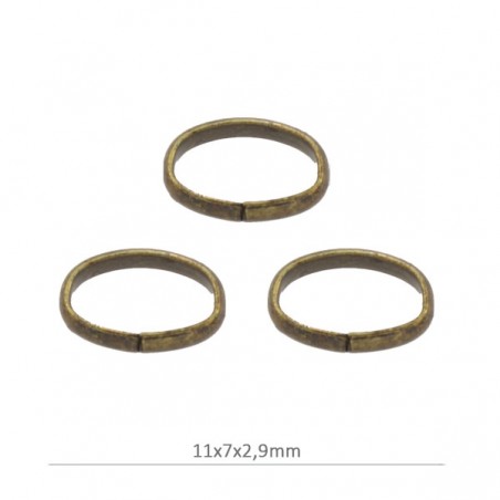 - Anilla ovalada grapa de latón en color oro viejo. - El tamaño es de 11x7 milímetros y tiene un grosor de 2,7 milímetros. - El precio es por bolsa y la bolsa contiene 4 unidades.