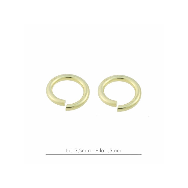 - Anilla redonda de plata con un baño de oro. - El diámetro interior es de 7,5 mm. y el hilo es de 1,5 mm. - El precio es por bolsa y la bolsa contiene 4 uds.