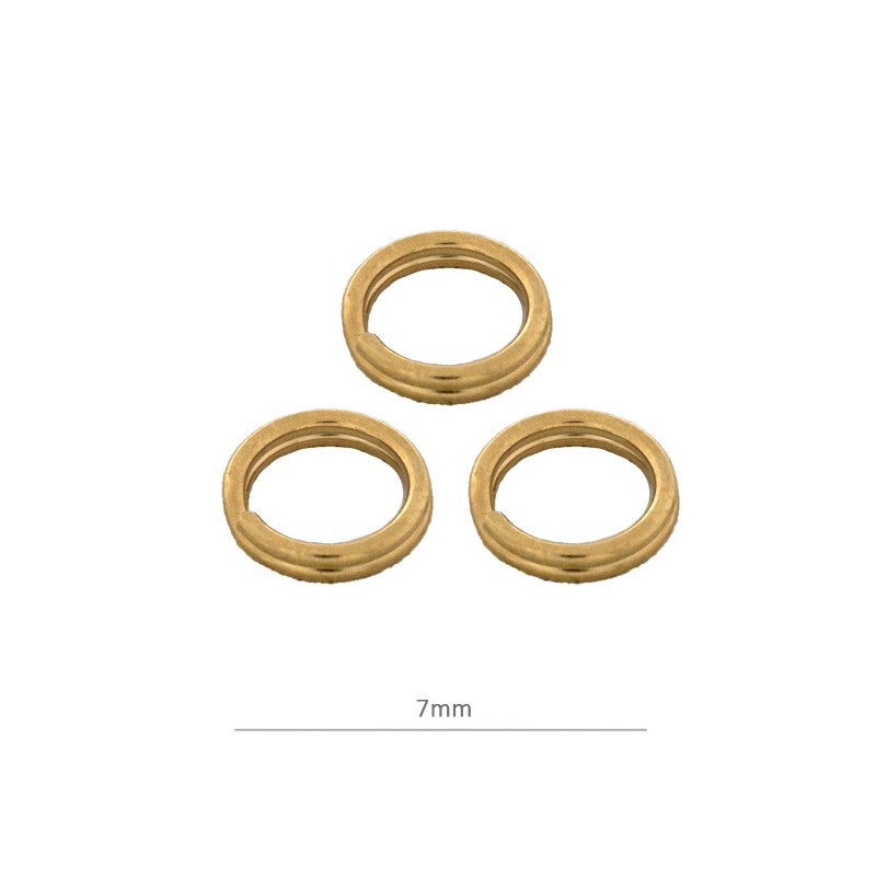 - Anilla llaverito de latón en color dorado. - El tamaño es de 7x1,5 milímetros. - El precio es por bolsa y la bolsa contiene 20 unidades.