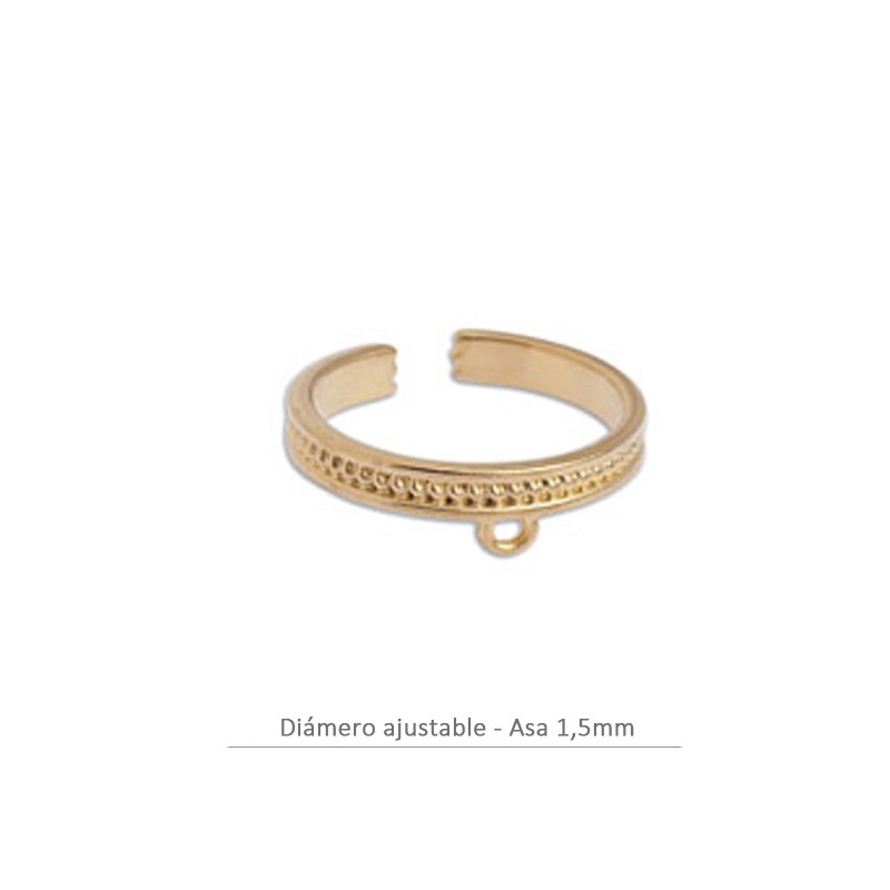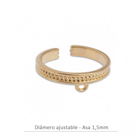 Anillo granulado ajustable con anilla. Zamak con baño de oro
