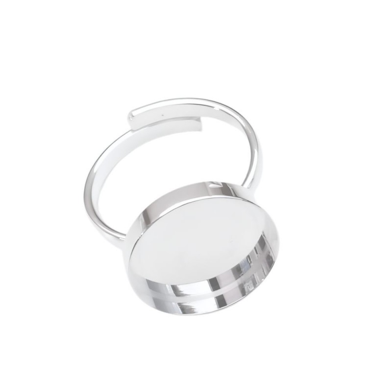 Anillo en plata de ley 925 con bisel redondo de 14mm en la zona de arriba. Ajustable.