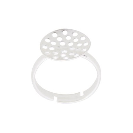 Anillo colador de latón en color plateado. La bolsa contiene 2 unidades y el disco es de 14 mm.
