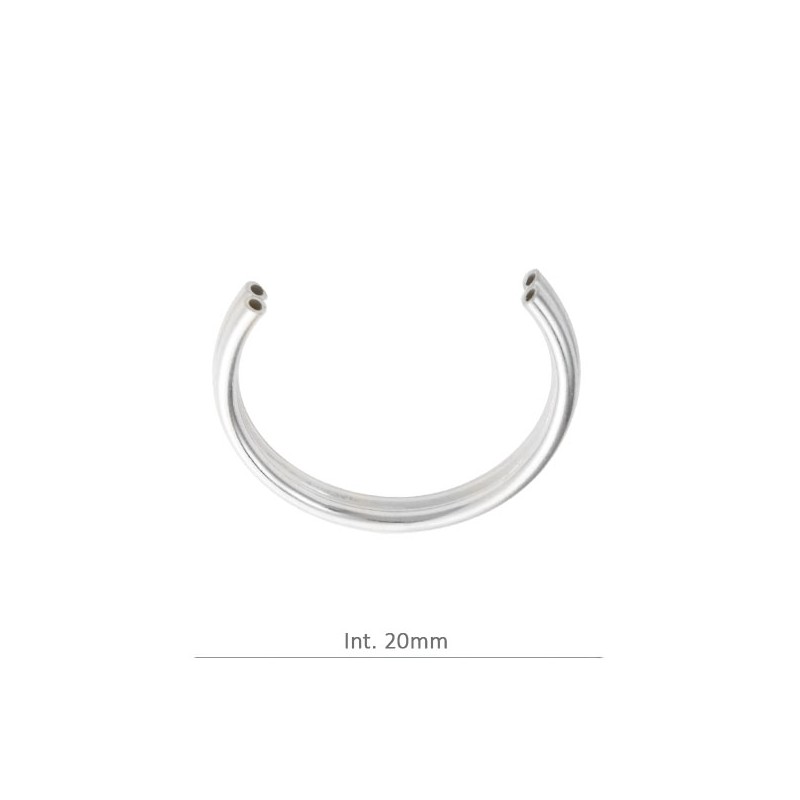 Base para sortija de doble tubo semicircular, de tamaño grande, en plata de ley. La bolsa contiene 1 unidad y el diámetro del tubo es de 1,5 mm.