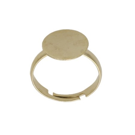 - Anillo base en latón con baño de oro. - El tamaño de la base es de 12 milímetros. - El precio es por bolsa y la bolsa contiene 2 unidades.