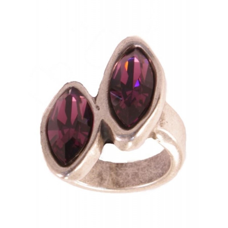 Anillo en zamak con baño plata y dos cristales Swarovski color Blush Rose. Le recomendamos pegar ambas piezas con nuestro pegamento especial para joyería con referencia 7405.