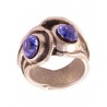 Anillo en zamak con baño plata y dos cristales Swarovski color Sapphire. Le recomendamos pegar ambas piezas con nuestro pegamento especial para joyería con referencia 7405.