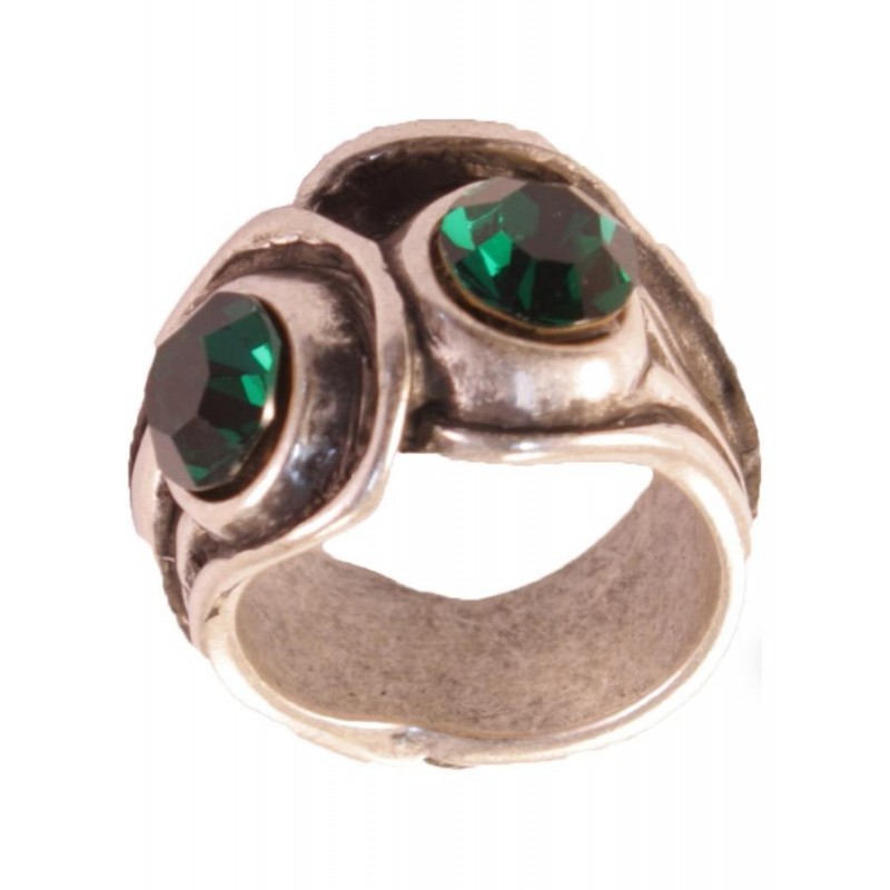 Anillo en zamak con baño plata y dos cristales Swarovski color Emerald. Le recomendamos pegar ambas piezas con nuestro pegamento especial para joyería con referencia 7405.
