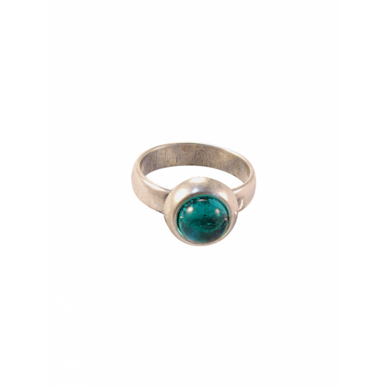 Anillo en zamak con baño plata y piedra de murano verde marino. Le recomendamos pegar ambas piezas con nuestro pegamento especial para joyería con referencia 7405.