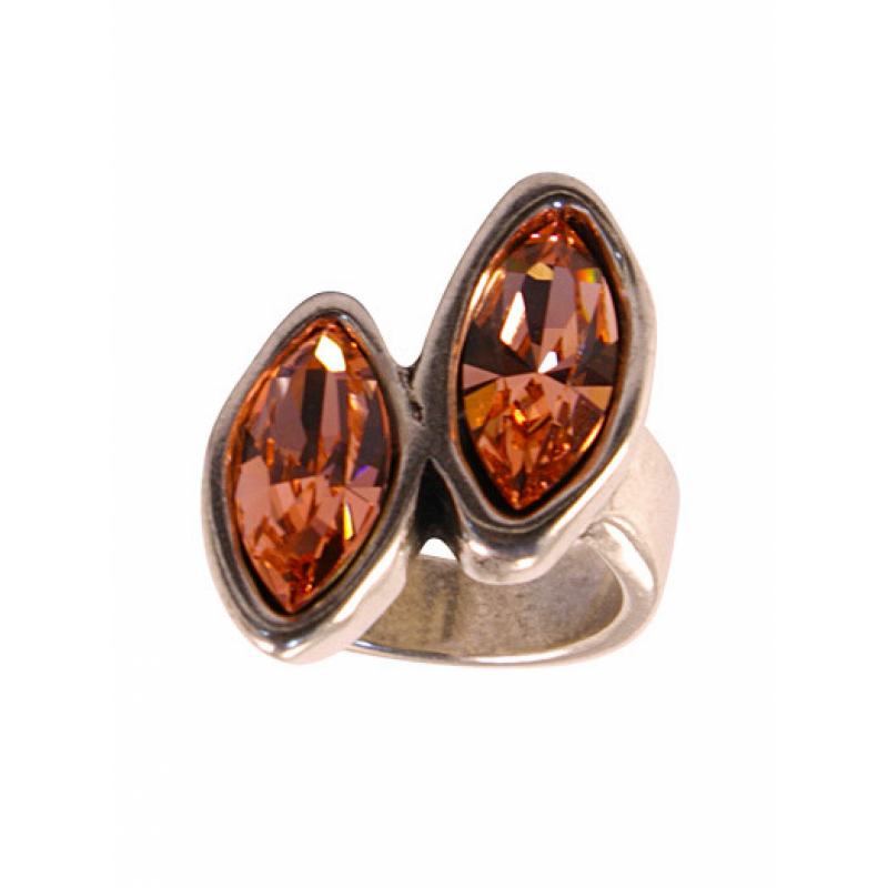 Anillo en zamak con baño plata y dos cristales Swarovski color Blush Rose. Le recomendamos pegar ambas piezas con nuestro pegamento especial para joyería con referencia 7405.