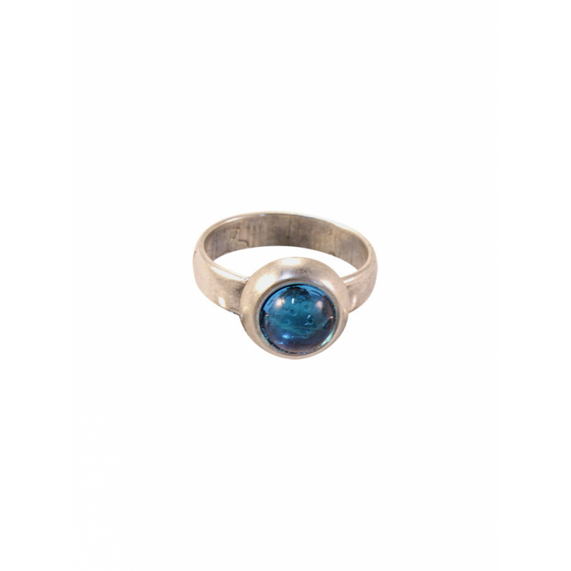 Anillo en zamak con baño plata y piedra de murano azul cielo. Le recomendamos pegar ambas piezas con nuestro pegamento especial para joyería con referencia 7405.