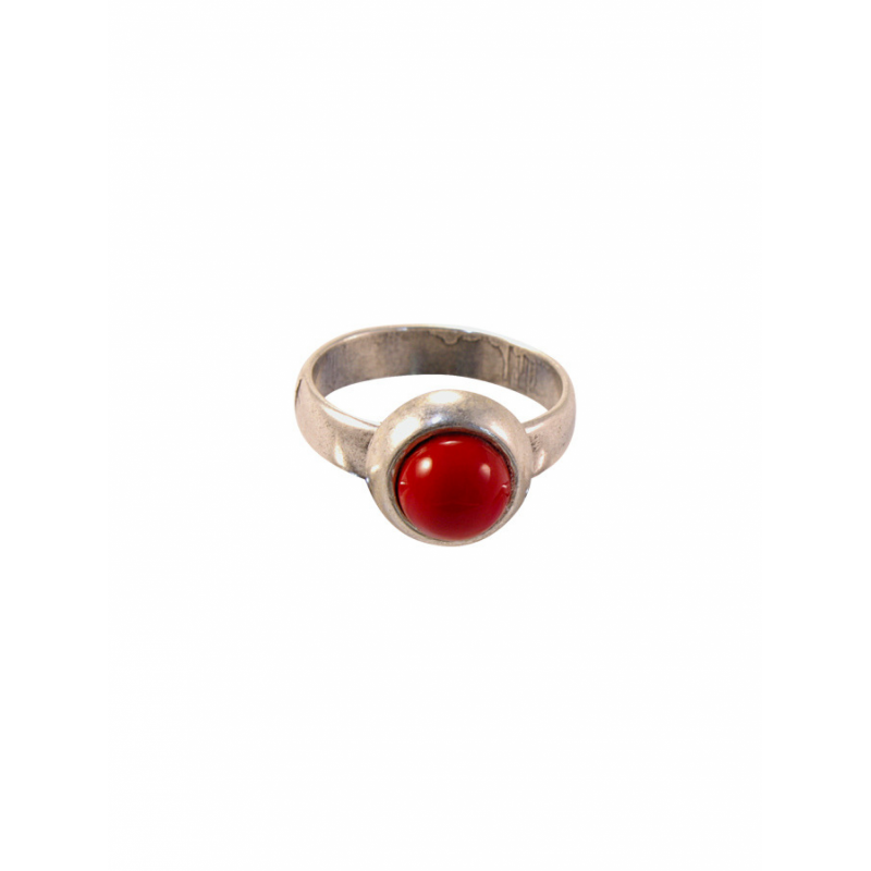 Anillo en zamak con baño plata y piedra de murano roja. Le recomendamos pegar ambas piezas con nuestro pegamento especial para joyería con referencia 7405.