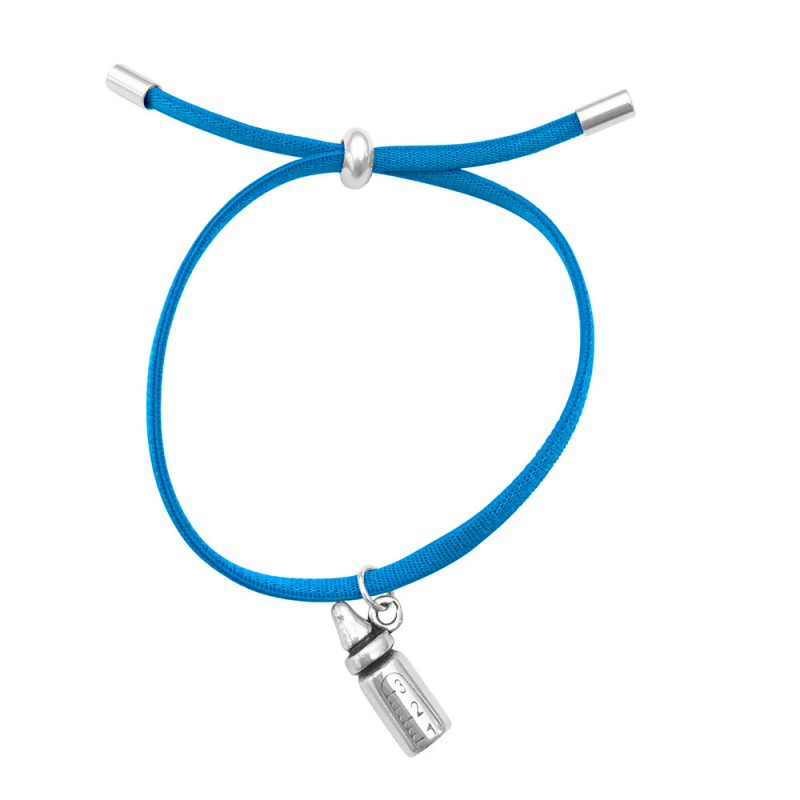 Sorprende a tus invitados creando a mano los detalles de tu fiesta de baby shower, regalándoles esta preciosa pulsera con colgante de biberón que podrá llevar todos los días para recordar ese bonito día. El color que tiene en la foto es Azul cielo.