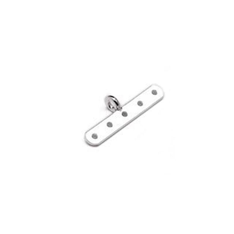 Separador de hilos para collares o pulseras, de 6 taladros, con anilla, en plata de ley. La bolsa contiene 1 unidad. El tamaño es de 28x4 mm. y la anilla es de 5 mm.