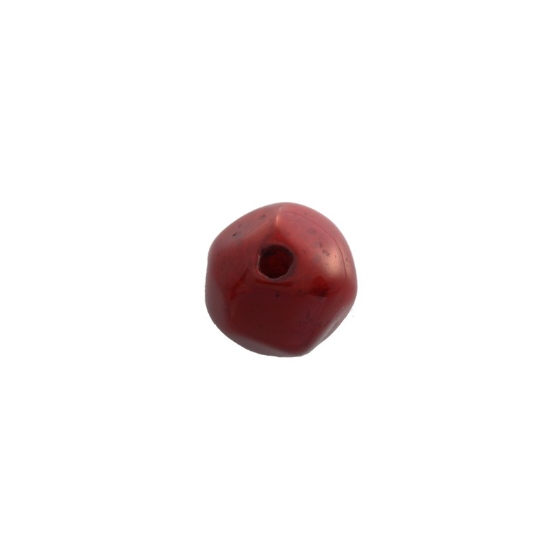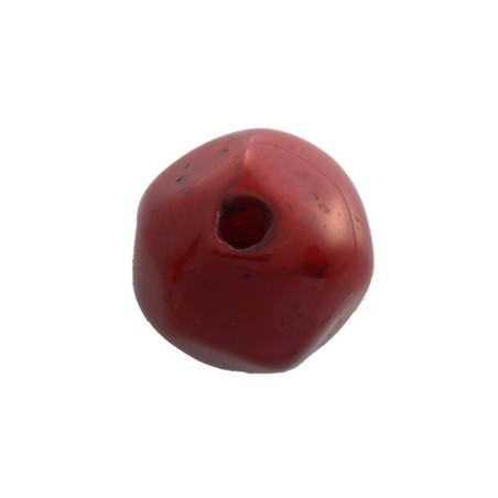 - Bola de resina en color granate. - Tamaño de 12 a 14 milímetros. - Taladro 3 milímetros. - Base plana y forma irregular.