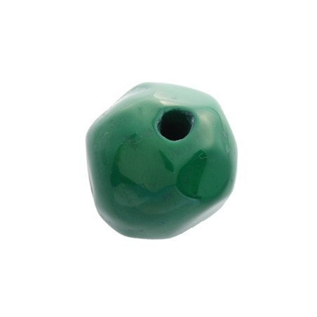 - Bola de resina en color verde botella. - Tamaño de 12 a 14 milímetros. - Taladro 3 milímetros. - Base plana y forma irregular.