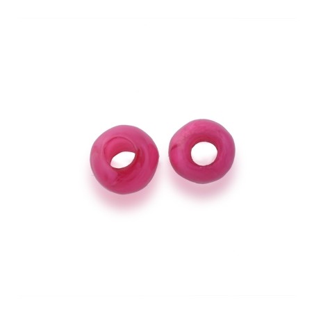 - Bola de resina en color fucsia. - Tamaño 7 mm. - Taladro 3 mm. - Base plana y forma irregular. - La bolsa contiene 10 unidades y el precio es por bolsa.