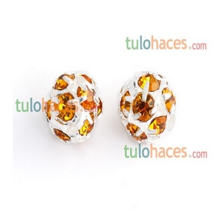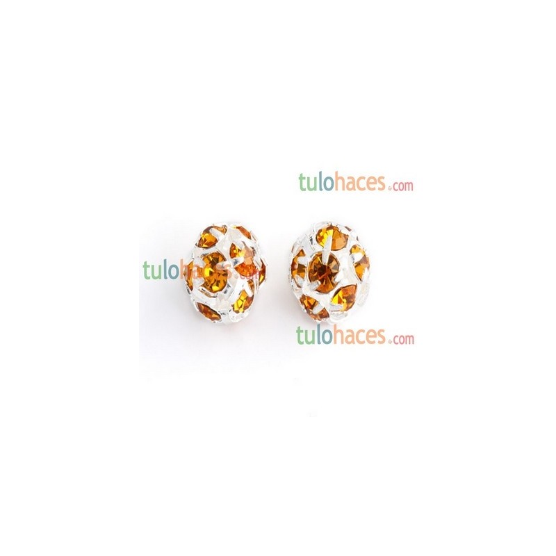 Bola rondel 8 mm. Pedrería plateada y topaz
