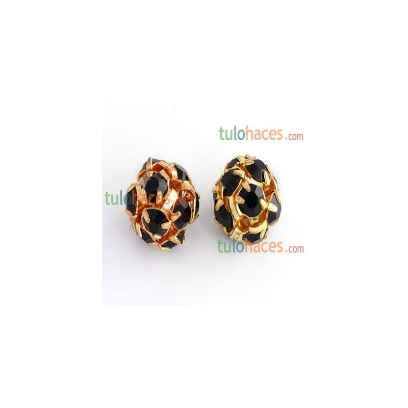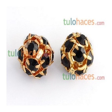Bola rondel 8 mm. Pedrería dorada y Jet