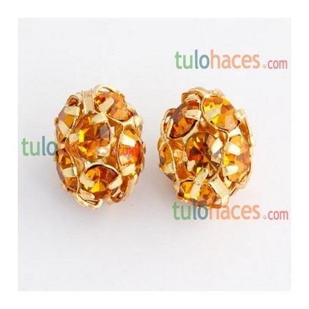 Bola rondel 8 mm. Pedrería dorada y Light Siam