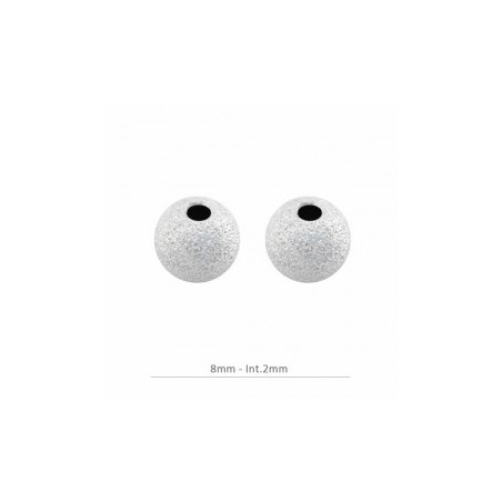 Bola granulada, en plata de ley. La bolsa contiene 2 unidades. El diámetro exterior es de 8 mm. y el diámetro interior es de 2 mm.