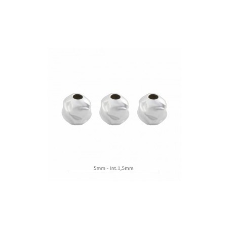 Bola golpeada, de tamaño mediano, en plata de ley. La bolsa contiene 4 unidades. El diámetro es de 5 mm. y el taladro de 1,5 mm.