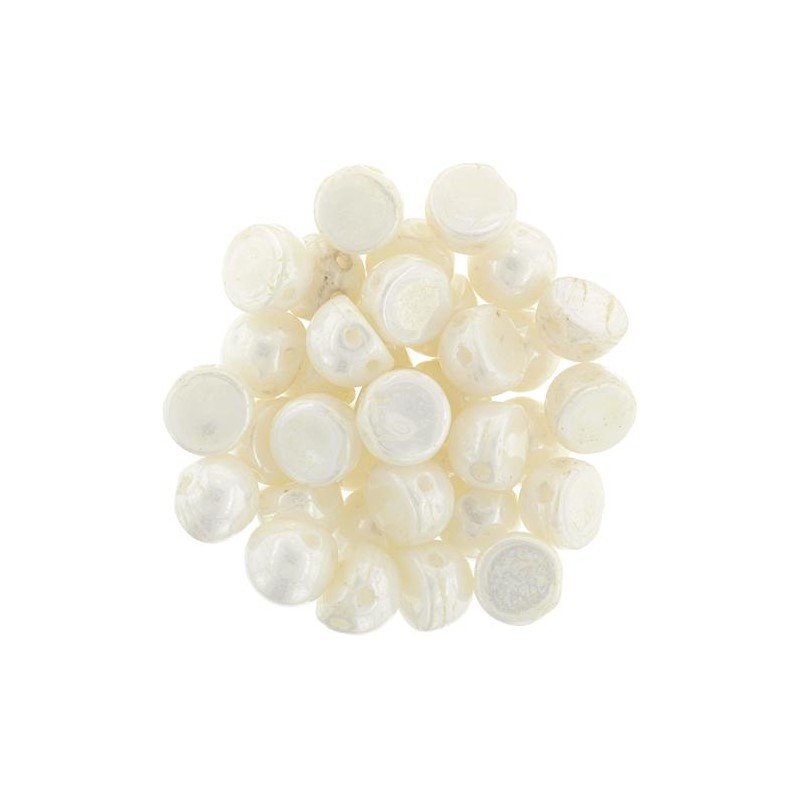 Las cuentas Cabochon son cuentas en forma redonda y con base plana de 7 mm de diámetro, son como una media bola. Tiene dos agujeros en la parte más plana que atraviesan toda la cuenta. Son cuentas de alta calidad en vidrio.