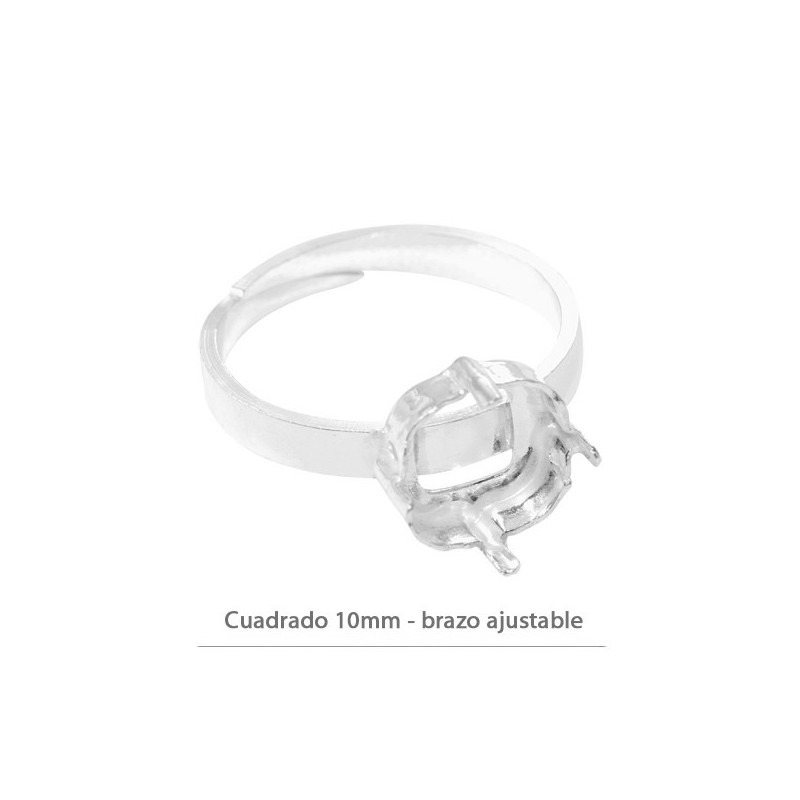 Sortija con brazo adaptable con garra para cabuchón cuadrado 10x10mm