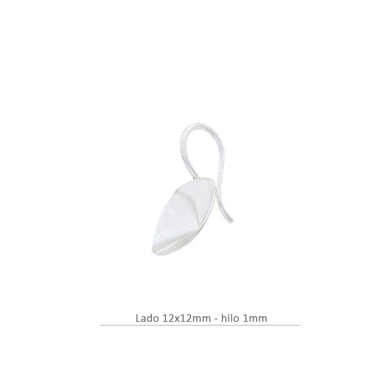 Pareja de pendientes de gancho en plata de ley 925 con cuadrado de 14mm en la zona de abajo para cristales de Swarovski de cabuchón modelo cuadrado.