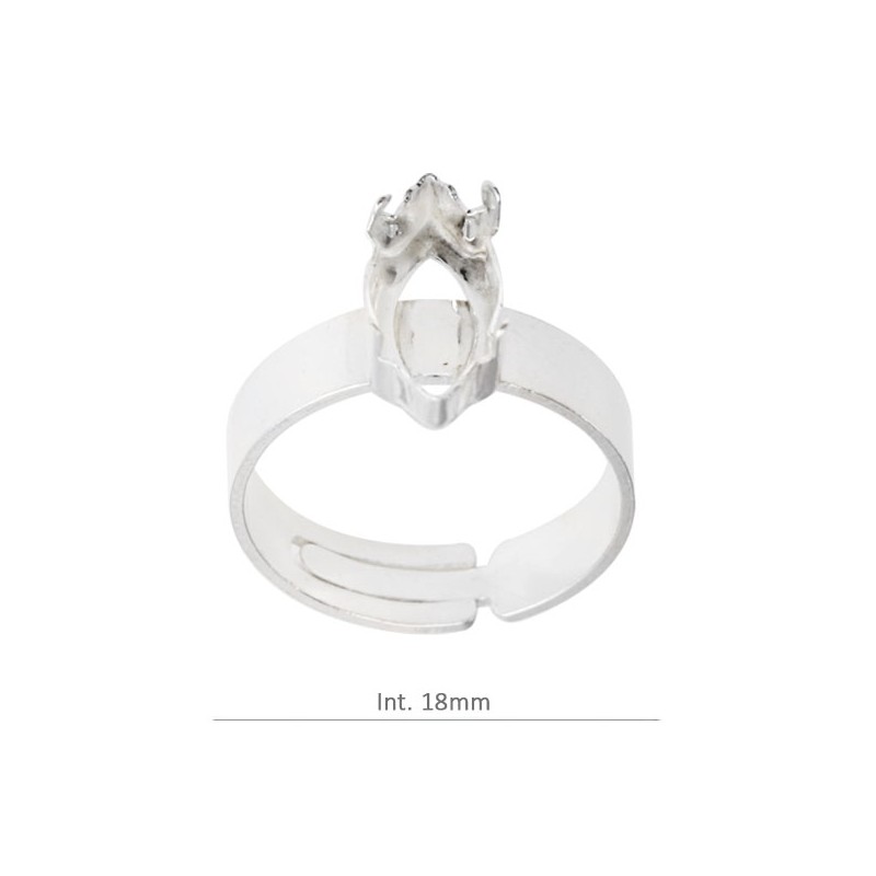 Anillo en plata de ley 925 con garra navette de 9x7mm en la zona de arriba especialmente diseñado para cristales de Swarovski redondos modelo navette de 9 x 7mm.